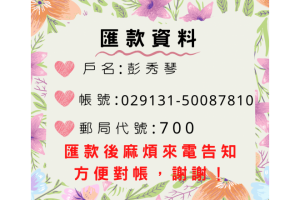6.戶名:彭秀琴 三灣郵局(代號700) 郵局帳號:029131-50087810