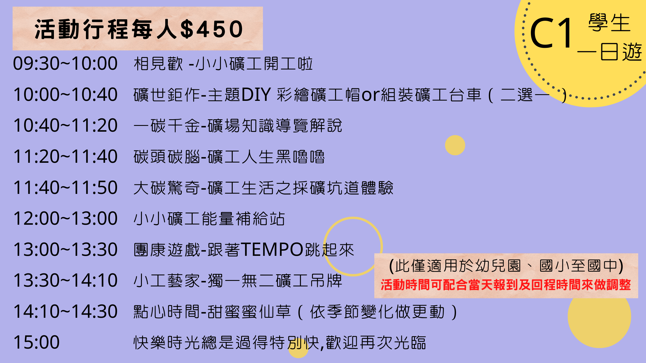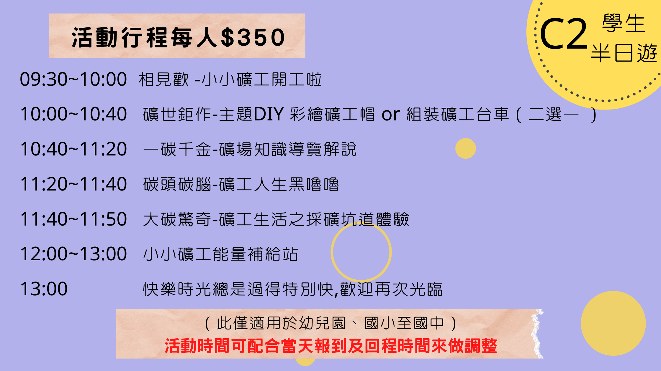 4.戶外教學行程若有更改,費用另計。